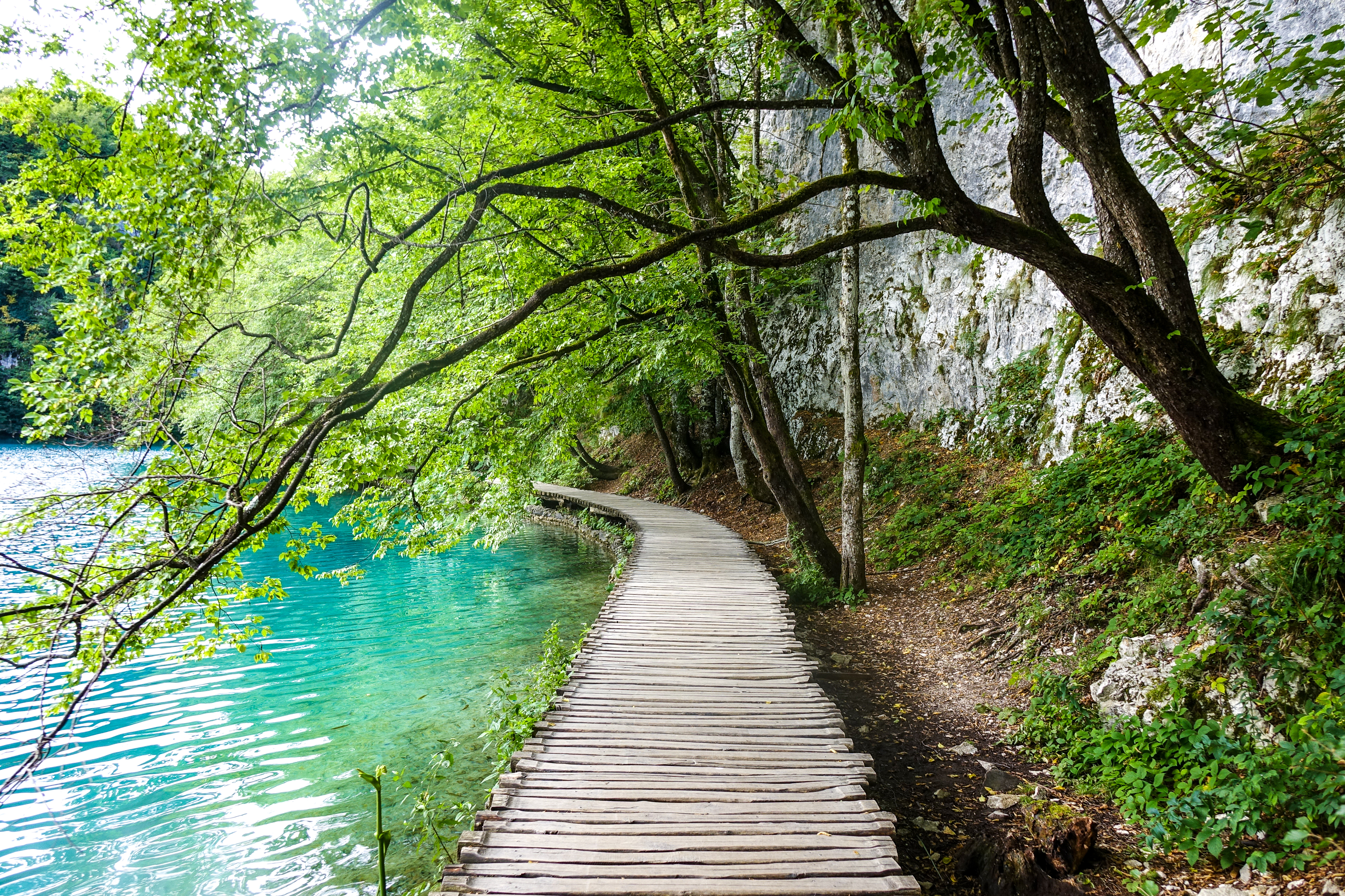 The photo below encapsulates so much of this beauty: the crystal clear turquoise water, the trees that seems to grow directly out of it, and the modest wooden pathway following the contours of the forest…