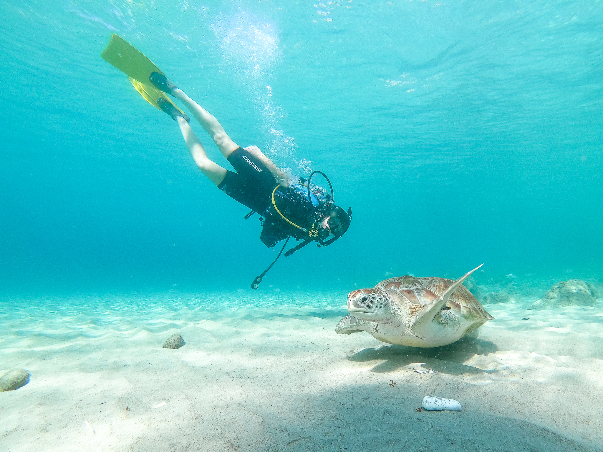At Playa Grandi, you can snorkel or dive with these sea turtles…and even get to know them by name!
